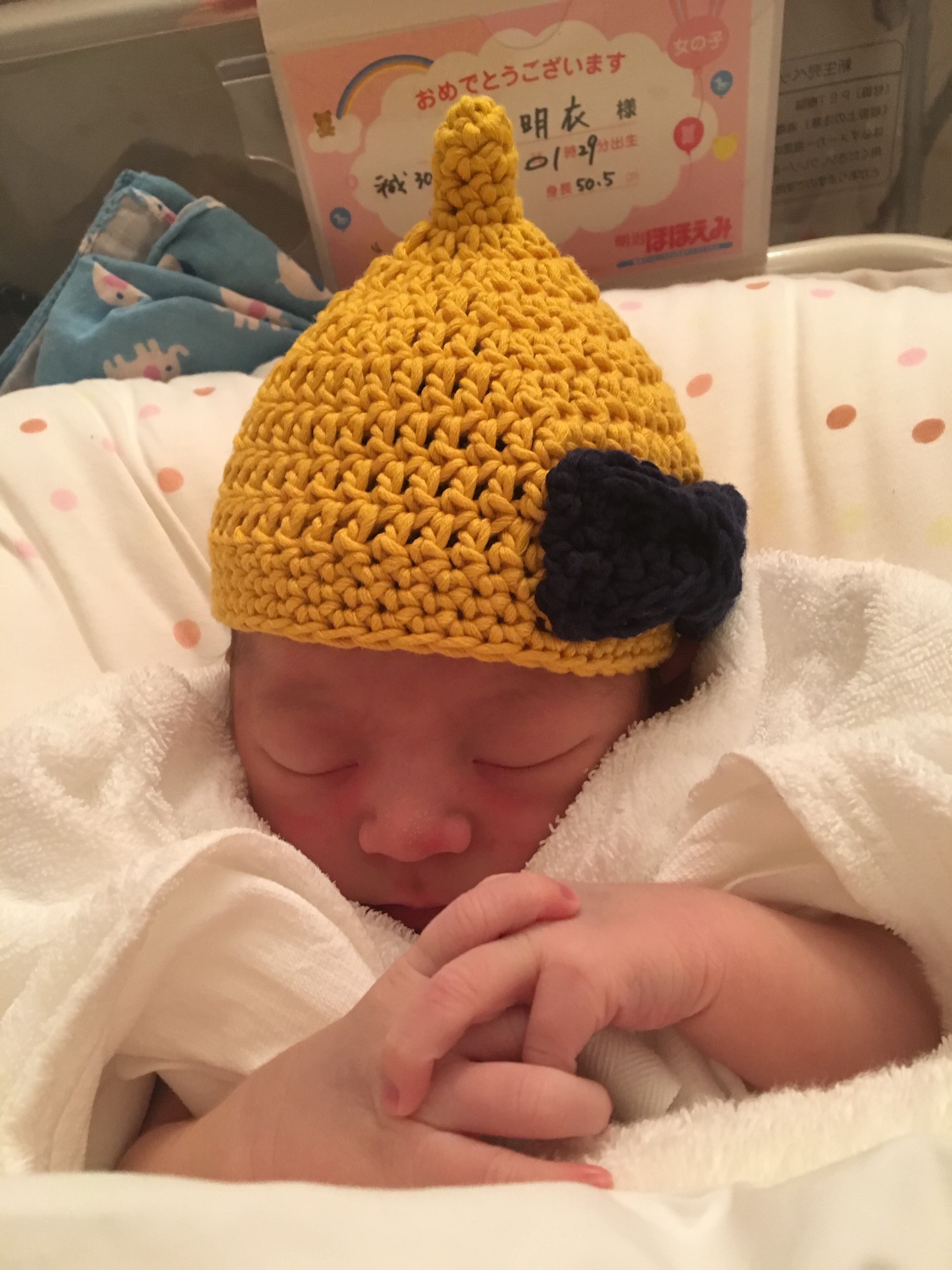 画像の黄色の帽子は頭囲33cmの新生児サイズです❁*.